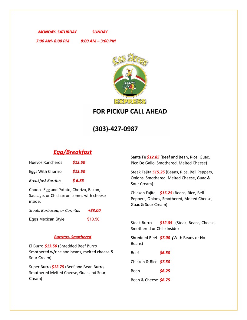 At Los Arcos Express, we take pride in our carefully crafted specialties, sourced from top local farms and prepared with expert care. Our culinary team knows that quality is key, selecting only the freshest, finest ingredients to create dishes that delight. Indulge in our expertly seared selections, like our Break fast Burritos, . Each dish is thoughtfully prepared and cooked to perfection, ensuring a memorable burst of flavor with every bite.
